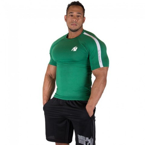 Футболка-стрейч универсального размера подойдет на атлета весом от 70 до 120 кг.